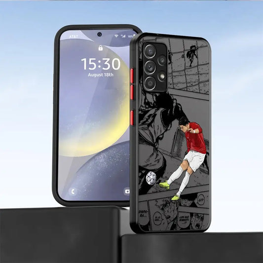 Cartoon Football Sports Anime Case for Samsung Galaxy A53 A21s A25 A26 A54 A52 A56 A73 A22 A34 A35 A36 A24 Black Edge