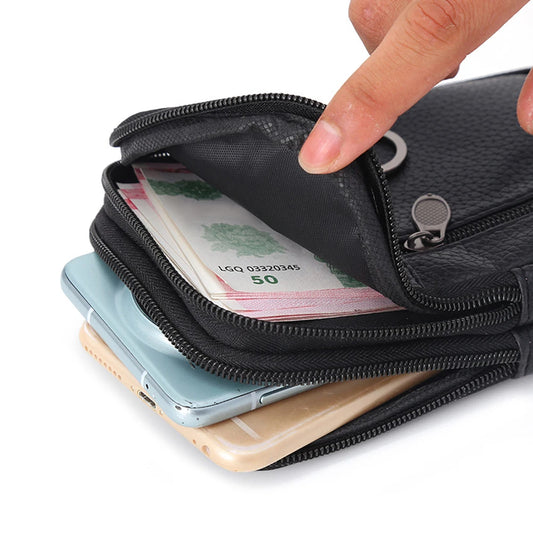 Men Waist Bag Mobile Phone Bag Outdoor PU Leather Wearable Belt Sports Waterproof Small Hanging Bag Business Leisure Coin Purse